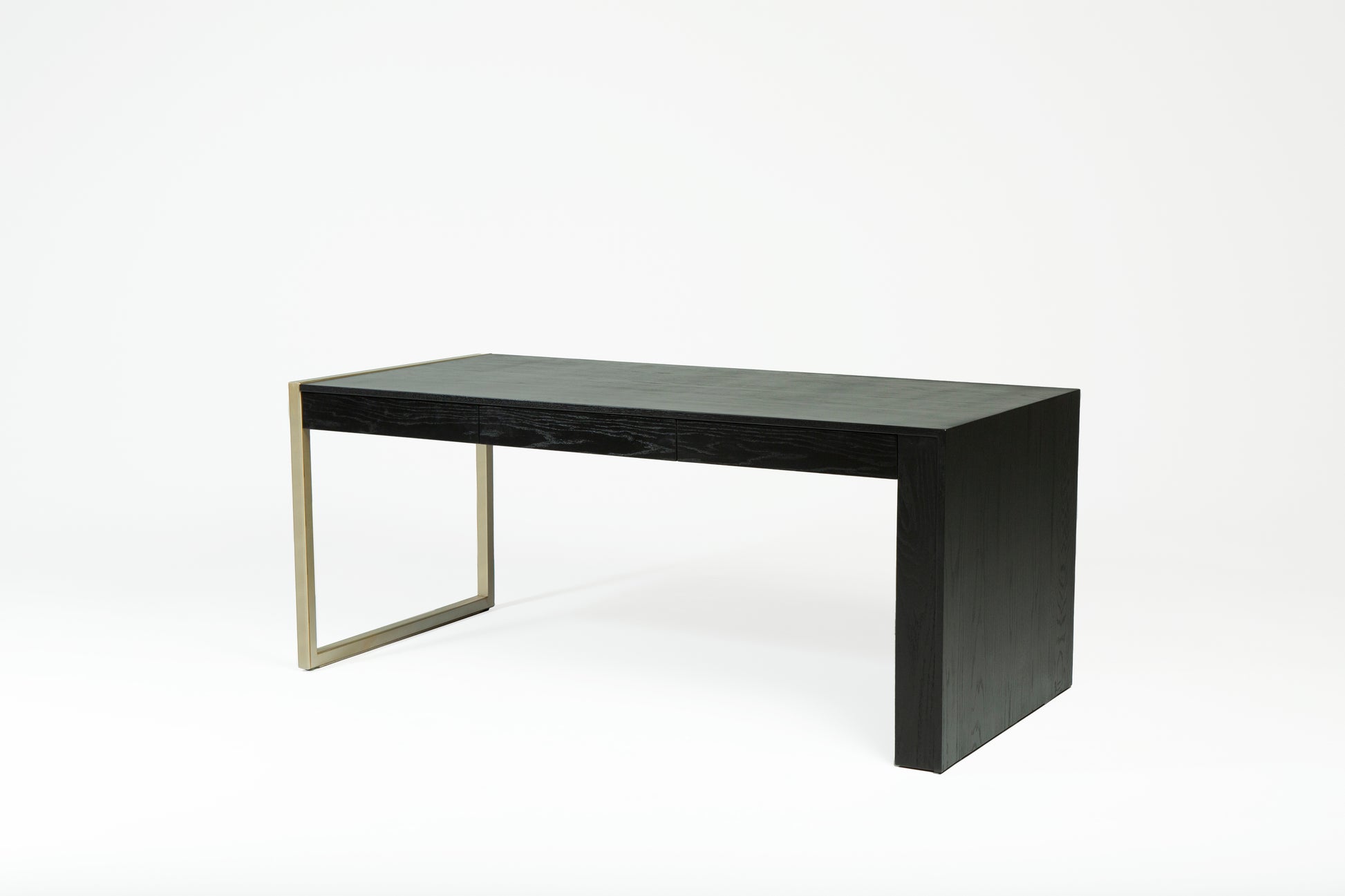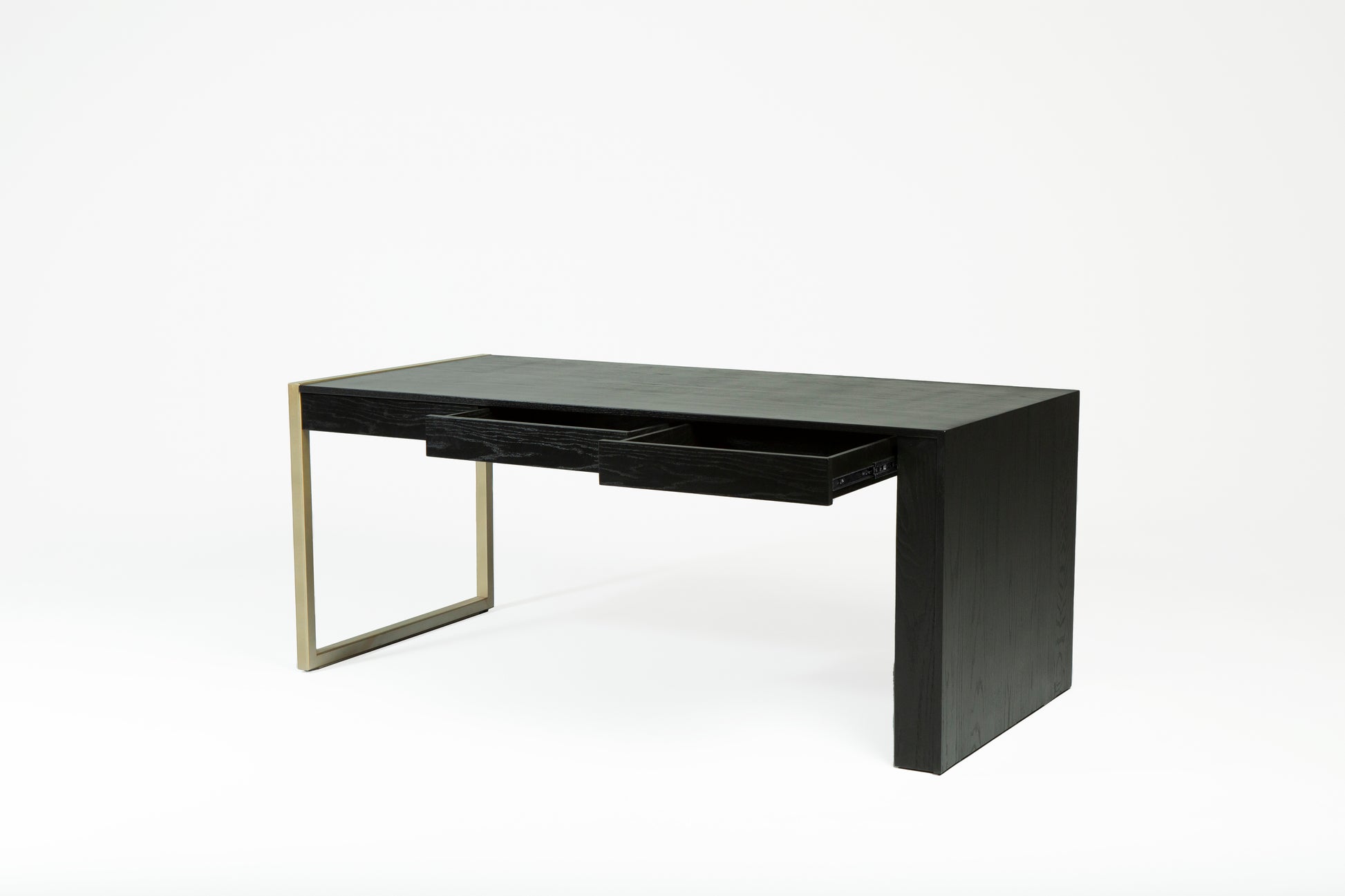 Atriani’s Linea desk is a stately addition to any office. This statement piece defies traditional office desks with a singular gold finished leg. Featuring three gliding drawers, this desk is as functional as it is elegant. Pair with the Executive Office Chair to elevate your workspace.