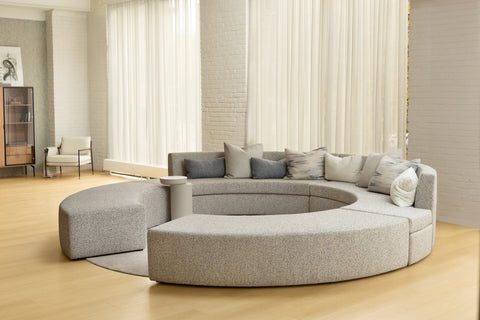 O sofá exclusivo Curva é definido por seu formato circular dramático e pelas linhas limpas formadas por seu encosto firme e almofada de assento singular. Este sofá versátil faz uma declaração em sua forma prototípica, mas também pode ser configurado para incluir peças lineares de outras coleções, adicionando dimensão e intriga por meio da interação de ângulos e formas. Combine este sofá com a poltrona Curva para um conforto incomparável.