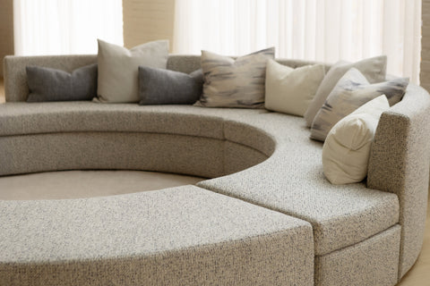 Nossas almofadas podem ser personalizadas com tecidos da nossa ampla coleção para se adequar a qualquer estética. Seja para um visual harmonioso que combine com o sofá ou para um contraste ousado que traga um toque de personalidade, nossas opções de tecidos são fornecidas por fabricantes de alta qualidade e refletem o artesanato e a elegância da coleção Curva.